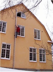 Redningsstigen er en fastmonteret udtrækkelig stige,